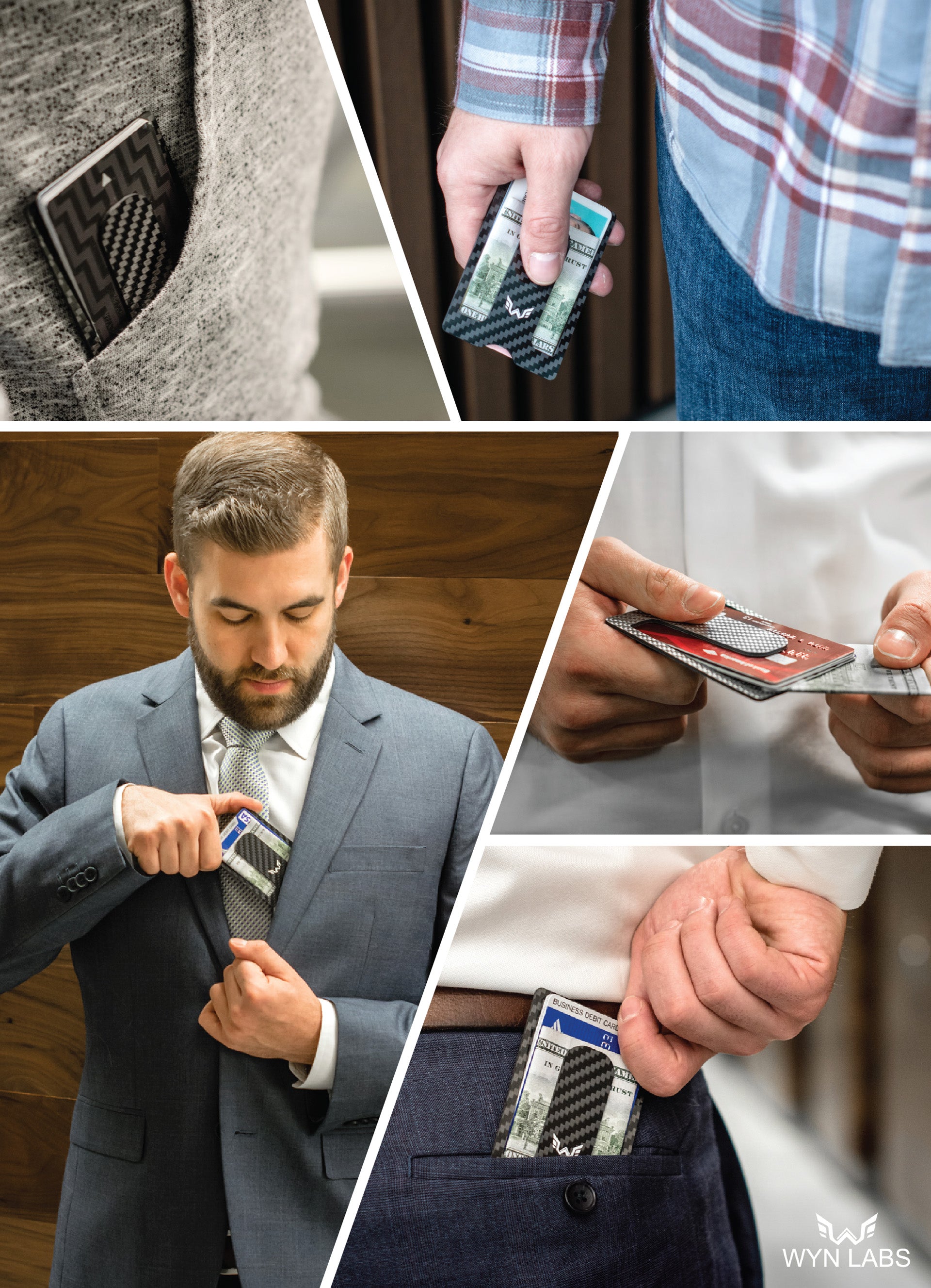 WYN's exquisite carbon fiber material and modern design makes it the perfect wallet for every occasion. It is comfortable during work, secure and lightweight for active wear, durable for the outdoors, and compliments any attire from casual to formal.
