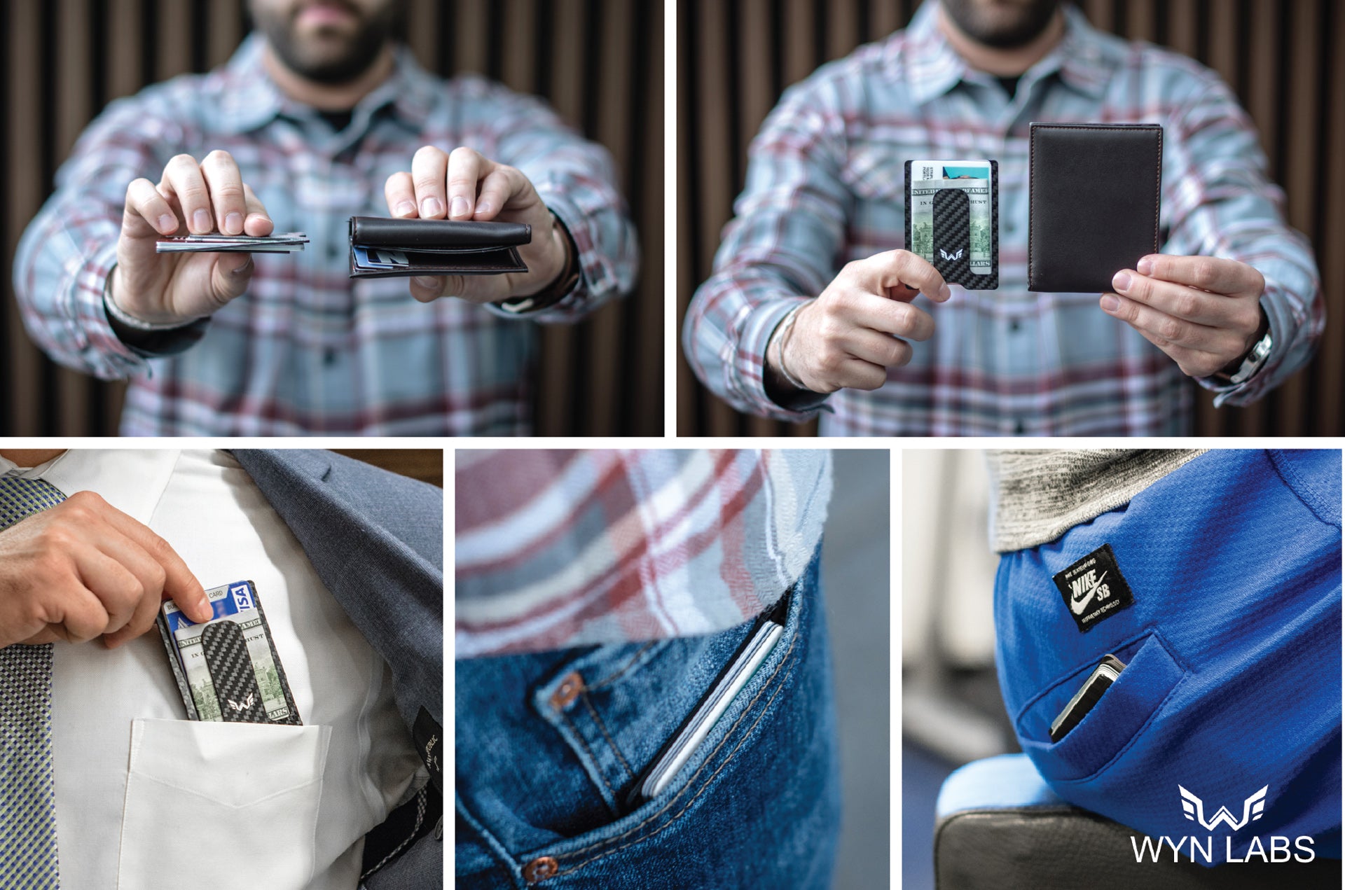 WYN's exquisite carbon fiber material and modern design makes it the perfect wallet for every occasion. It is comfortable during work, secure and lightweight for active wear, durable for the outdoors, and compliments any attire from casual to formal.